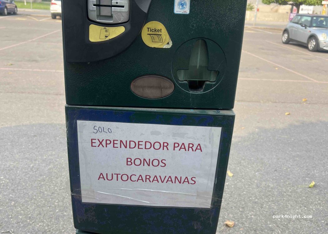 When using the Telpark App its very easy to get it wrong! Move the map until it shows “Autovaravanas Avda Peregrinos” 24 Horas 5€ then pay I had mistaken it for the adjacent car park area “20, Sector Tanatorio” The parking wardens showed me my error the following morning!
