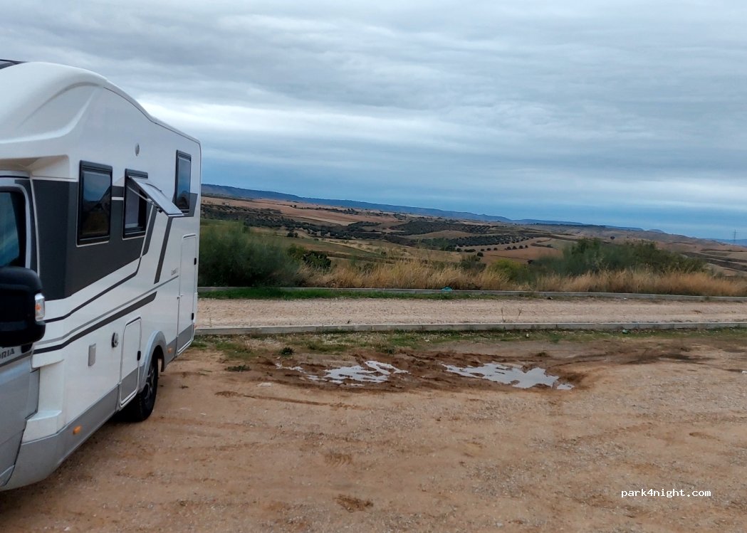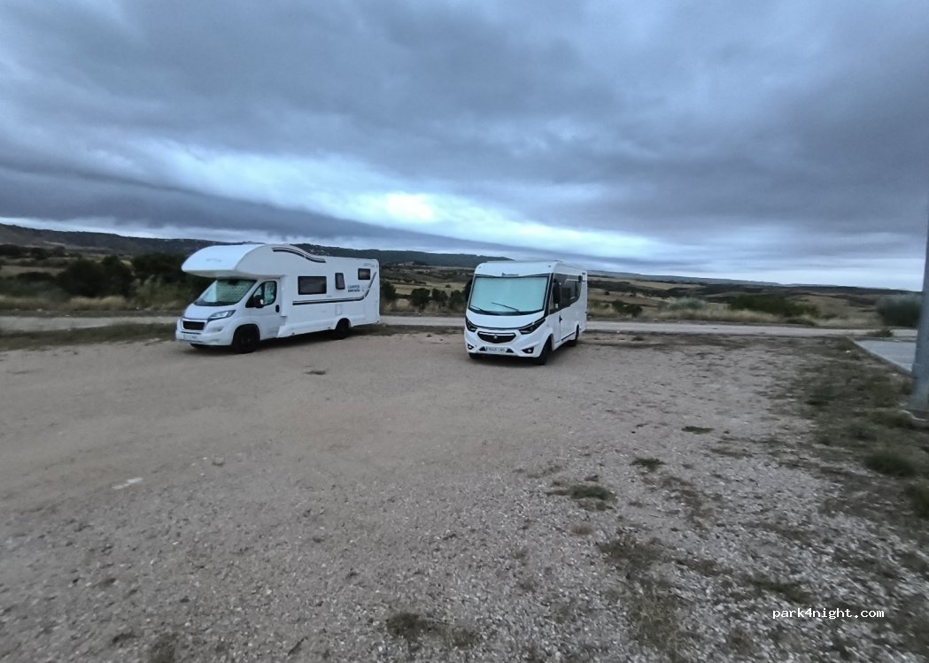 amplio estacionamiento y al haber mas autocarabana te cientes seguro. a 2 minutos de area de descarga de aguas y recarga también