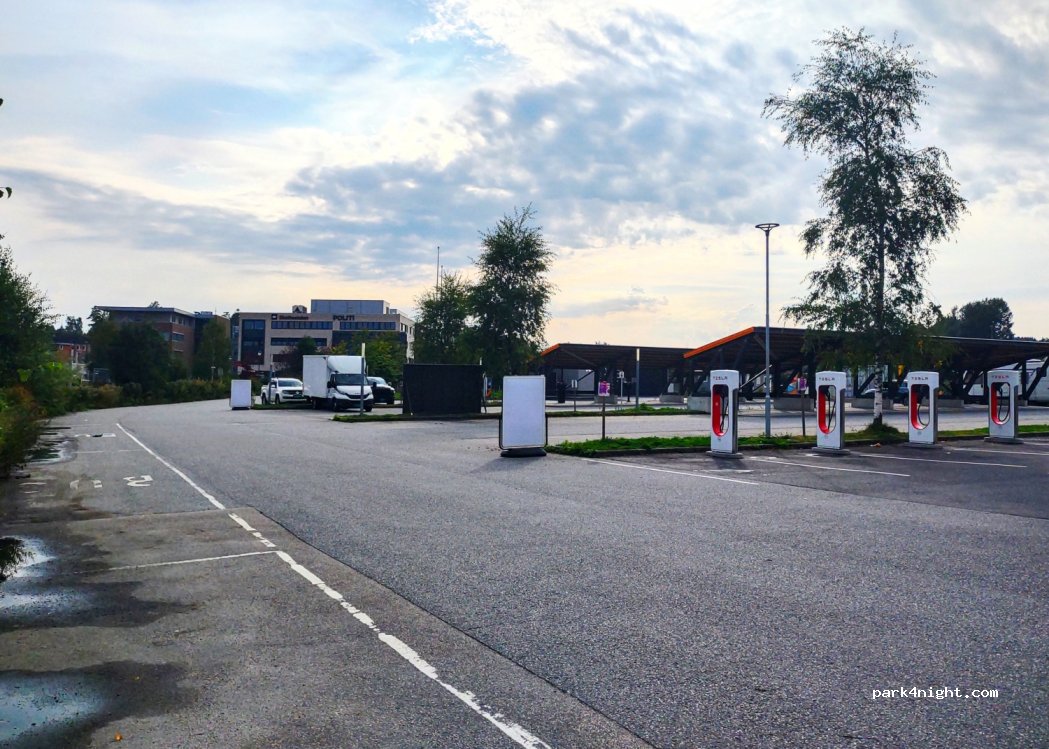 Relativement calme la nuit,disons de 00h00 à 6h00. Place gratuite; même Easypark ne pends pas de frais. Passe pour une halte d'une petite nuit. Il y a environ 10 emplacements.