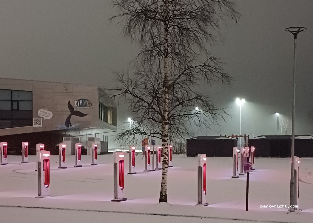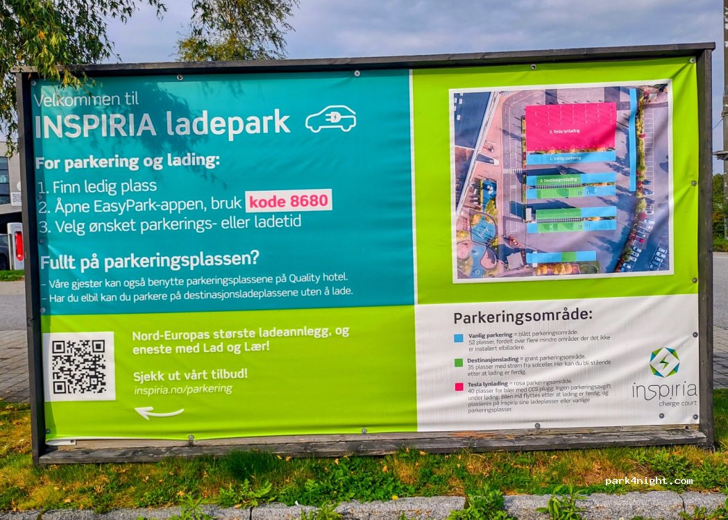 Parkplatz des Inspiria Science Center: 127 Parkplätze (52 Parkplätze für alle Fahrzeuge und 75 Parkplätze mit Ladestation für Elektrofahrzeuge), kein Service, keine Verbotsschilder.