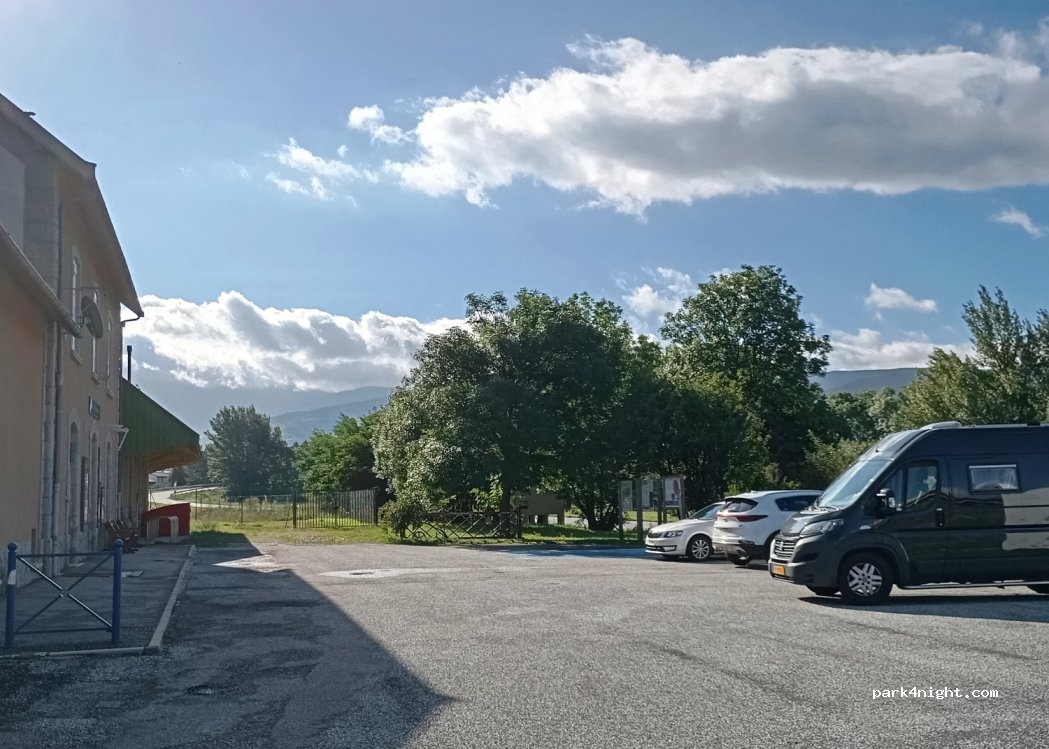 Solo el aparcamiento de la estación de tren de Bourg-Madame. La mejor razón para visitarlo son los baños en el pequeño edificio a la izquierda del edificio de la estación. ¡Los baños están impecablemente limpios! Probablemente el aparcamiento esté bien para pasar la noche, ya que está en una calle sin salida, aunque cerca de otra calle.
