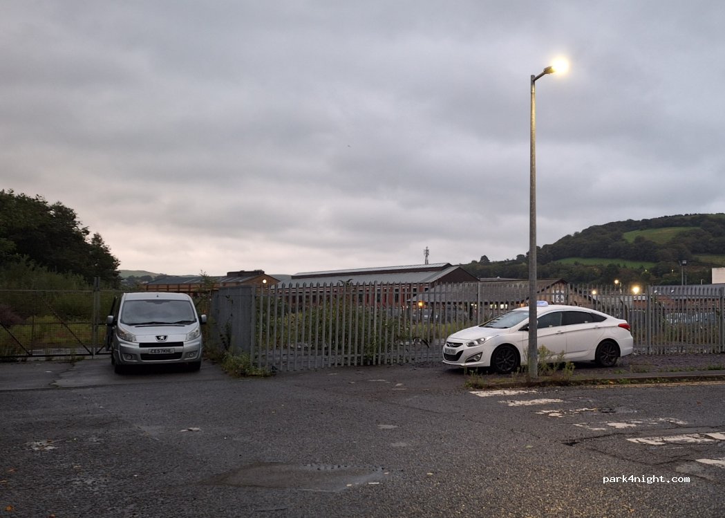 Parkplatz für ein paar kleinere Lieferwagen hinter Lidl. Ziemlich viele Autos kommen und gehen vom Railway Mens Club, aber nichts zu Aufdringliches.