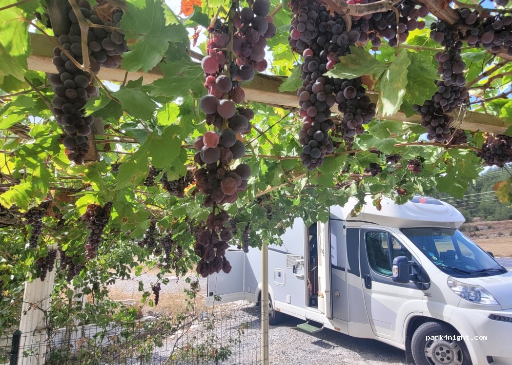 Großer Parkplatz mit angrenzender Quelle. Überdachte Terrasse mit Weinreben. Die Wasserversorgung ist im Winter abgestellt.