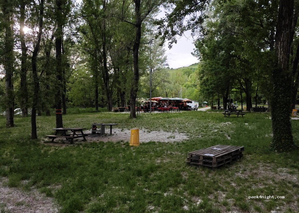 posto super tranquillo vicinissimo fiume, con posti all'ombra. Attenzione all'accesso tramite ponticello stretto. no servizi, vicino chiosco che offre anche affitto postazione grill