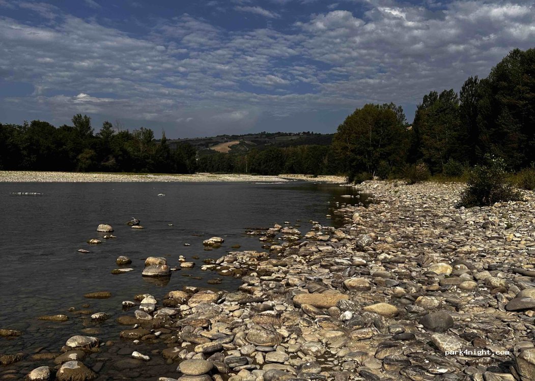 Super endroit, nuit calme. On s’est rafraîchis dans la rivière c’était géniale niché dans un coin de verdure avec des barbecues, des tables, poubelles de tris !