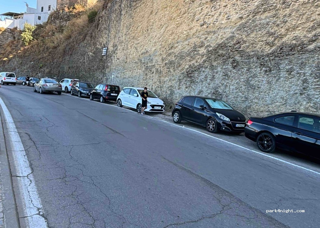 Para visitar y dar una vuelta por el bonito pueblo de Setenil bastante bien. Para pasar un día entero no porque no deja de ser un arcén de una carretera transitada, no un parking. Está inclinado y con mucho tránsito. A 5 minutos del pueblo. Hay un parking parking pero bastante más alejado. Sin problema para encontrar sitio hoy martes. Otros días y otras épocas del año supongo que será más difícil