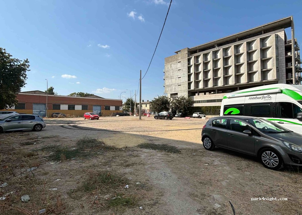 Large sandy car park, quite far from the city centre but you can easily find a space.