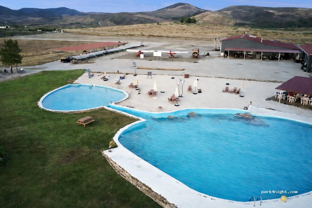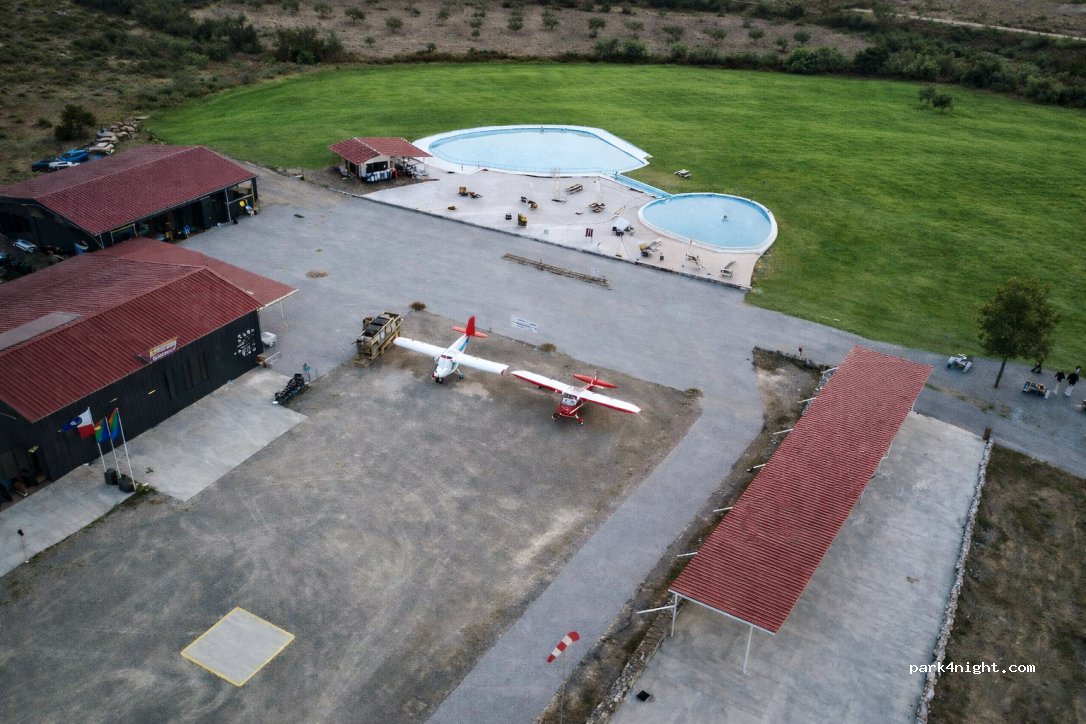 Accueil très sympathique, aire à l’aérodrome avec 2 piscines et un très grand espace de jeux pour les enfants, une très belle vue et très calme.