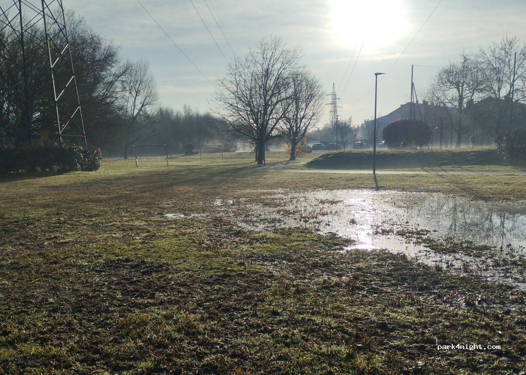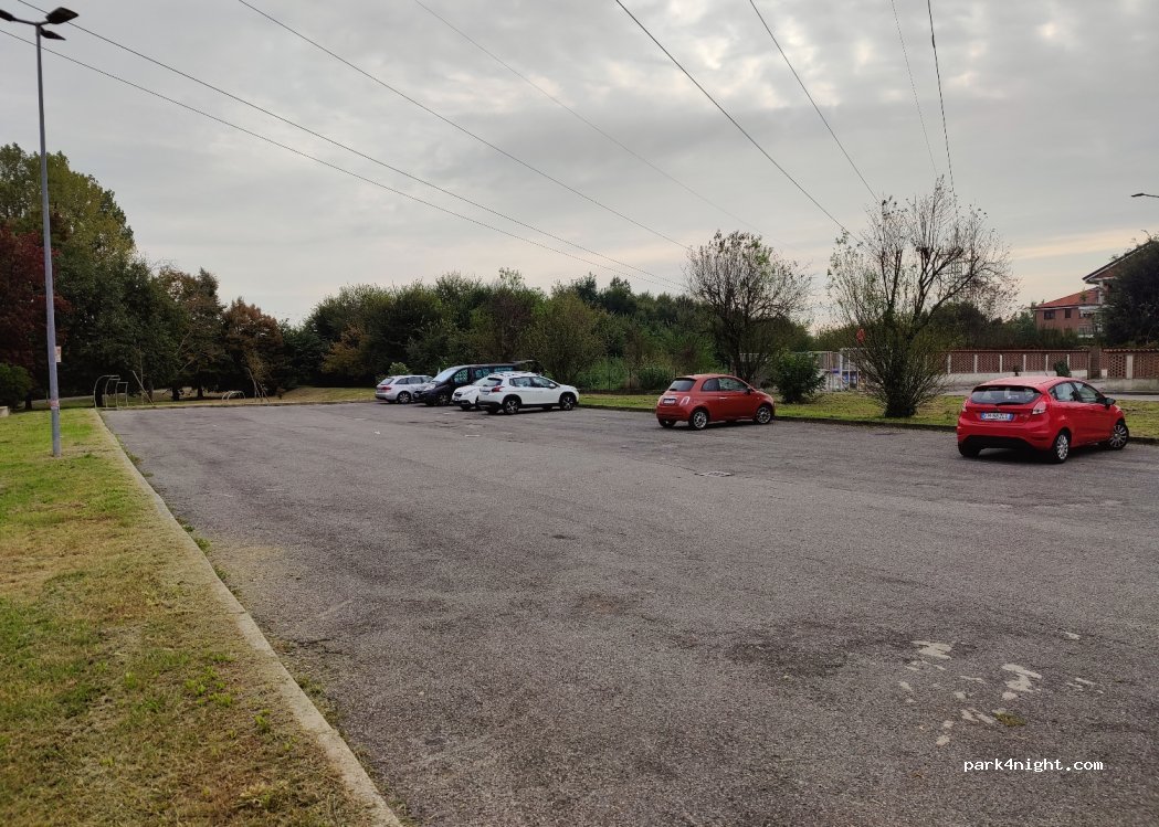 Parking d'un espace vert relativement peu fréquenté. Idéal pour une nuit si vous prenez le métro à San Donato pour rejoindre Milan. Robinet avec eau potable.