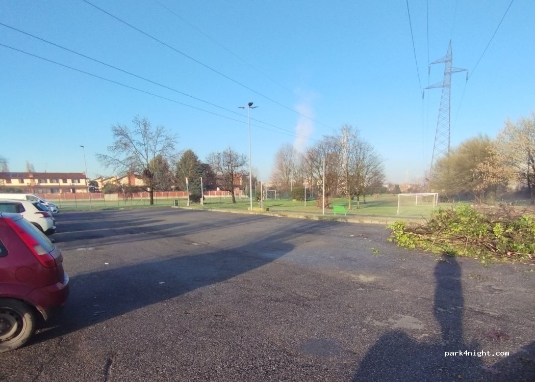 Abbastanza ampio, in piano su asfalto in contesto tranquillo tra area residenziale e gradevolissimo Parco della Vettabbia. Ideale anche per sosta di camper e furgonati entro i 6 metri; a pochi metri trovi fontanella d'acqua, cestini e tavoli per picnic all'ombra. Nell'immediato paese trovi market, farmacia e una graziosa chiesa.
