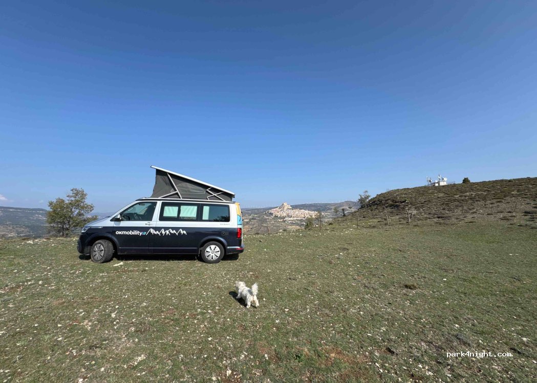Lieu au top. Nous avons pu y accéder en fourgon mais avec une petite manœuvre en fin de parcours pour pouvoir basculer sur le point de vue pour les moins téméraires il y a déjà des emplacements agréables avant sur le chemin. Une vue magnifique sur Morella. Il y a un parcours vtt à proximité. Nous avons passé une soirée et la nuit sans aucun passage.