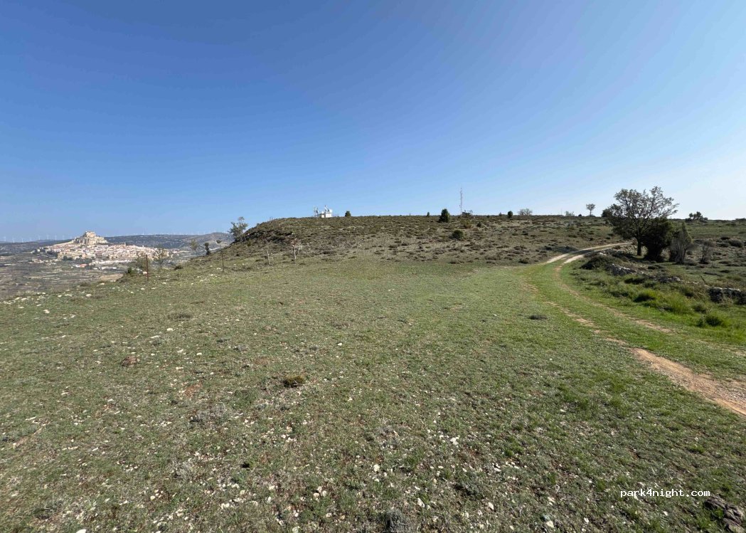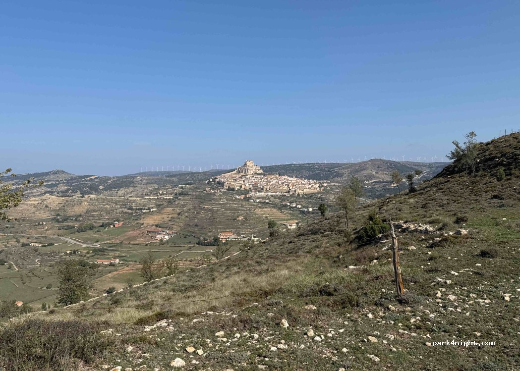 Place with a great view overlooking Morella in the middle of nature. Good quality dirt road. We were all alone.
