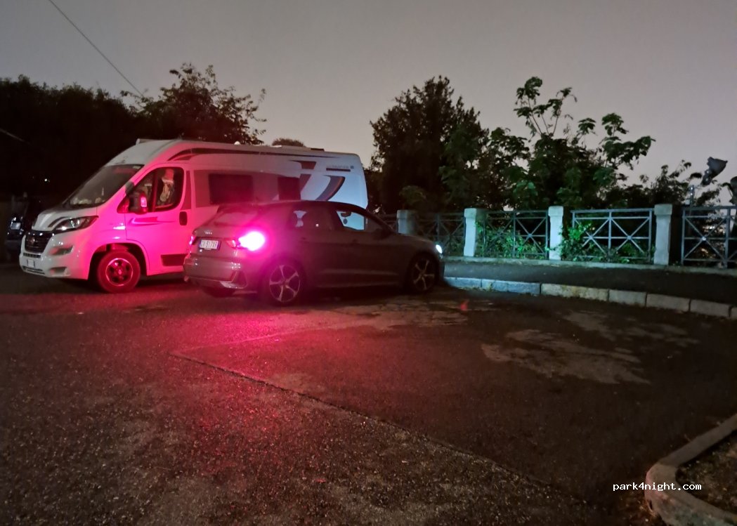 Llegamos tarde el domingo. Pequeño parque (4/5 plazas de aparcamiento) para pasar una noche tranquila antes de salir de Turín. Es el parque de un pequeño museo de montaña. No apto para autocaravanas grandes, perfecto para furgonetas. Tranquilo, además pasó la policía y no dijeron nada.