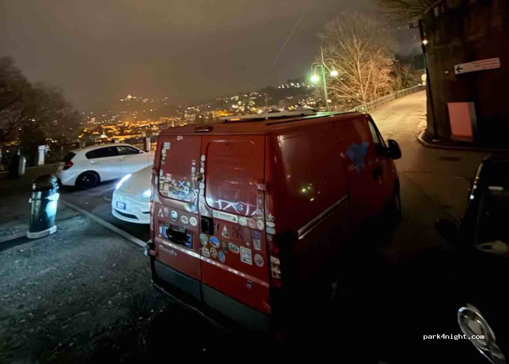 Arrived late at Sunday. Little park (4/5 parkings) for just one quiet night before leaving Torino. It is the park of a little mountain museum. Not suitable for big Camper or Motorhomes, perfect for Vans. Quiet, also police passed and they didn't say anything.