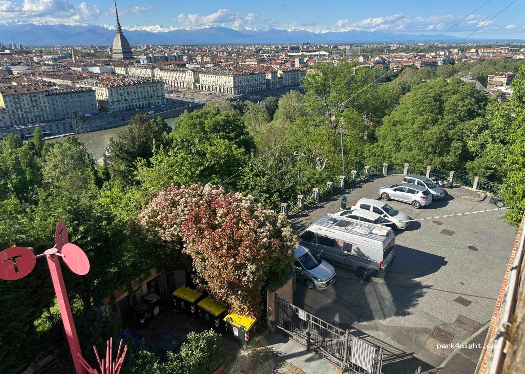 Breve recap dopo 2 notti: - Luogo turistico molto trafficato - Vista panoramica incredibile su tutta Torino - Parcheggio gratis senza limiti di orario Consiglio ma per brevi pernottamenti :)