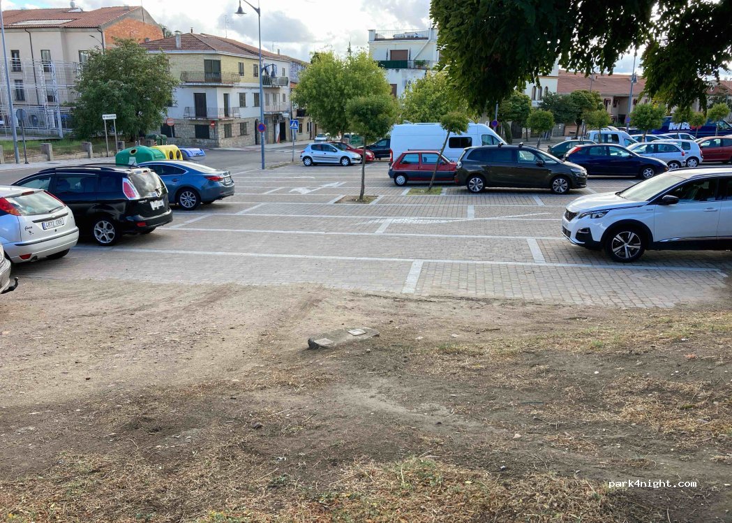 Parking público con plazas ligeramente inclinadas, al lado de la muralla con acceso a la ciudad y a 150m de la plaza mayor. No apto para AC grandes, ideal para furgonetas pequeñas o medianas. Sábados a la mañana mercadillo prohibido aparcar.