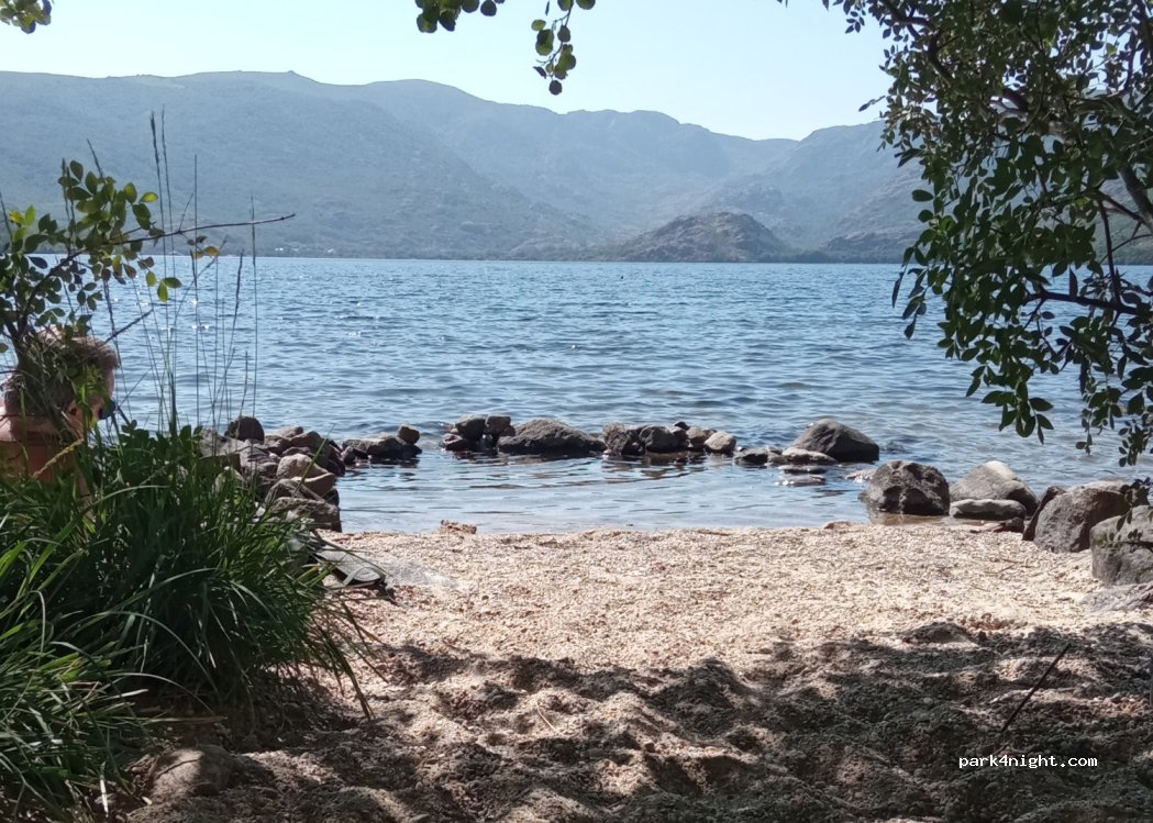 Es ist ein großer Parkplatz für den Zugang zum See, der im Sommer ein Wochenendziel ist. Die Gegend ist wunderschön, mit kristallklarem Wasser und einem sanft abfallenden Berg. Es gibt eine Bar/Restaurant und Tretboote können etwas weiter gemietet werden. Gegenüber dem Parkplatz befindet sich ein beliebtes Restaurant. Sie dürfen hier nicht über Nacht parken, da es sich im Naturpark befindet. Wer dabei erwischt wird, riskiert eine saftige Geldstrafe.