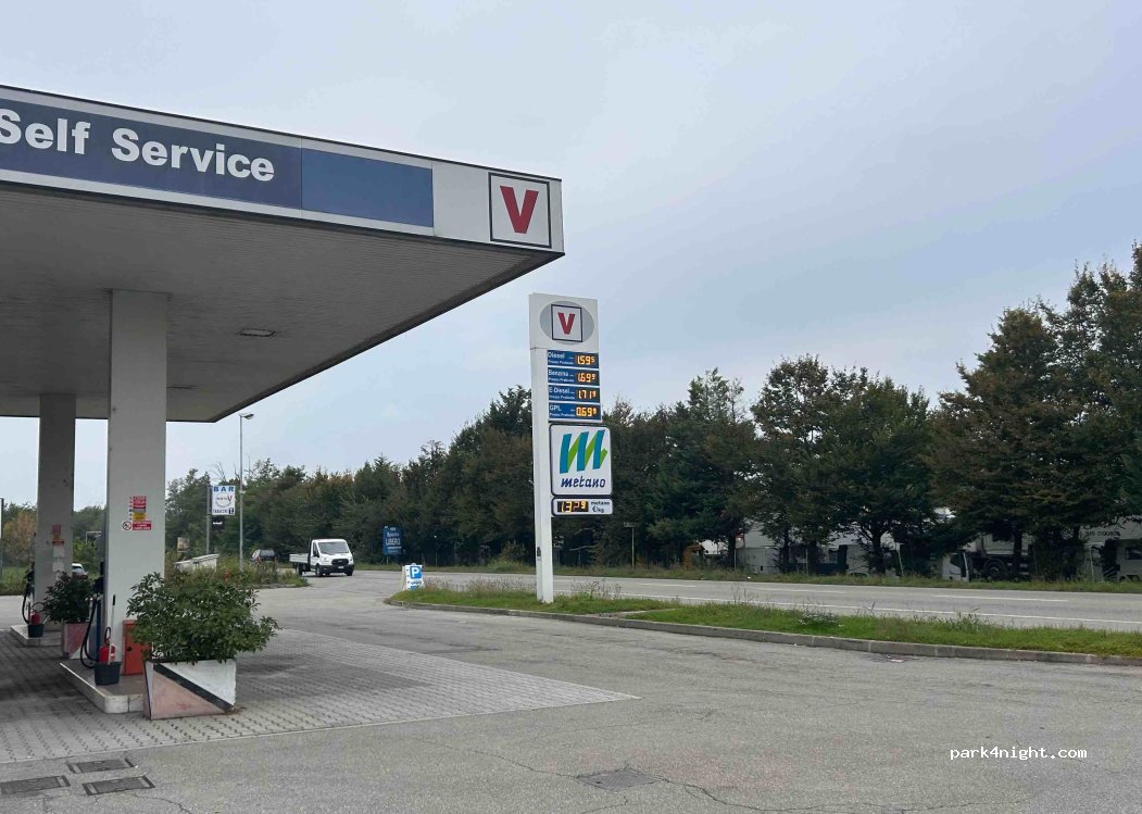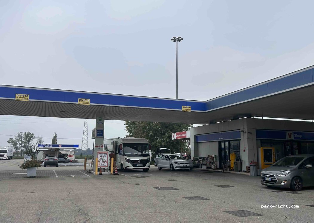 Station service avec option de ravitaillement GPL. Malgré l'interdiction de remplissage en Italie, nous avons pu faire remplir nos bouteilles-citernes ici. Service TOP.