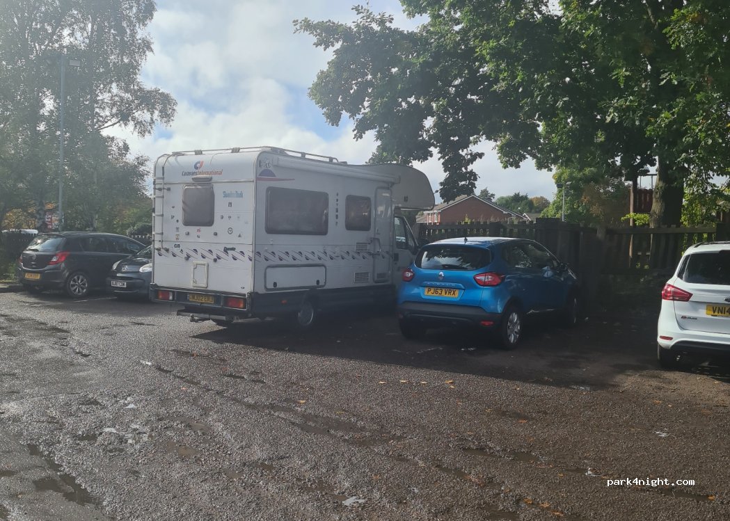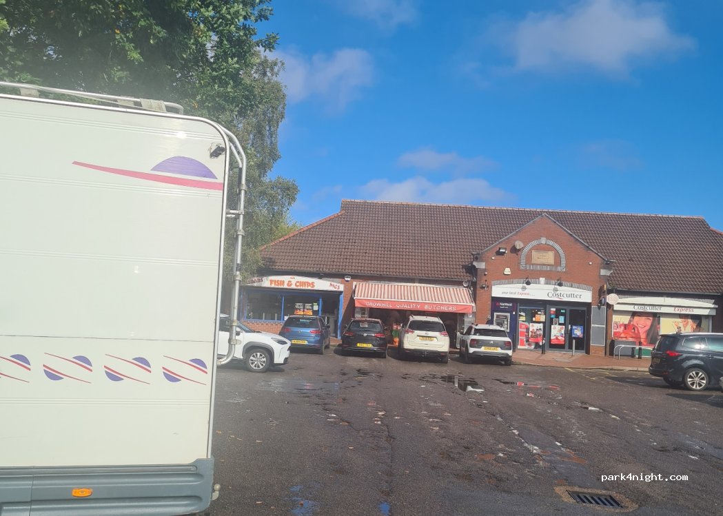perfect overnight stop. chip shop, convenience store and pub right next to. Once store is shut 21.30 very peaceful. a bit of morning traffic, delivering to store I guess. no restrictions. stayed one night no issue whatsoever.