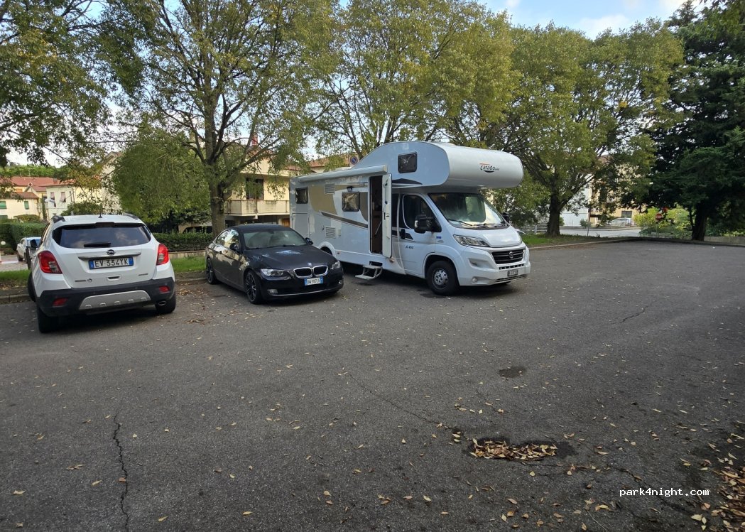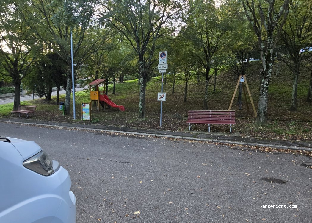 Piccolo parcheggio con un'area giochi davanti, perfetto se hai dei bambini. Abbiamo passato la notte qui, non ci sono cartelli di divieto, è un normale parcheggio. Attenzione alla pulizia della strada il primo e il terzo venerdì del mese dalle 9 alle 10.