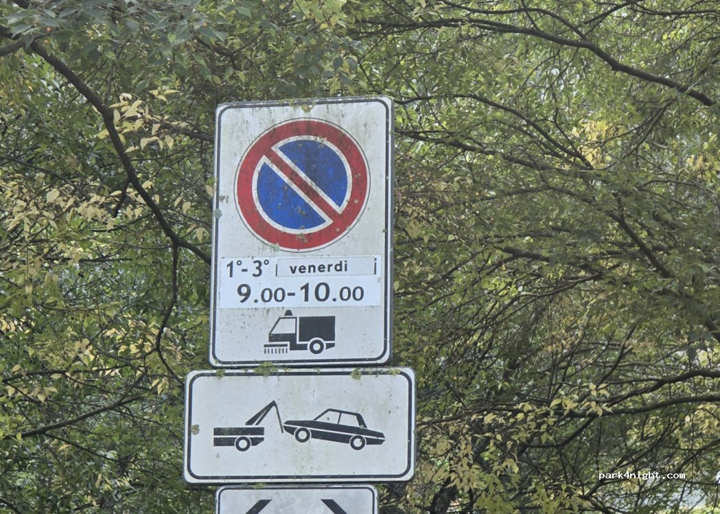 Parking forbidden on the first and third friday of the month from 9 to 10 due to street cleaning