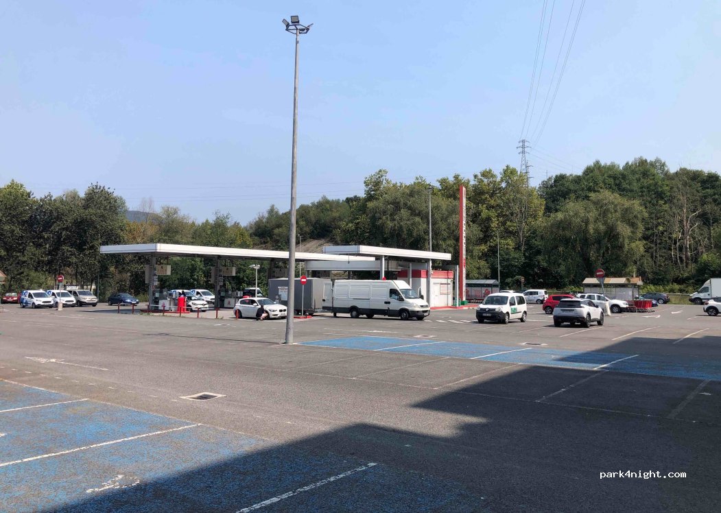 We refueled and spent a night without problems with a motorhome and there is an Alcampo in the parking lot next door but with a height restriction