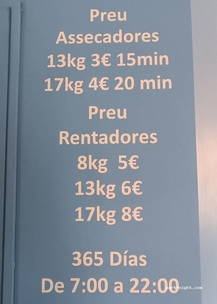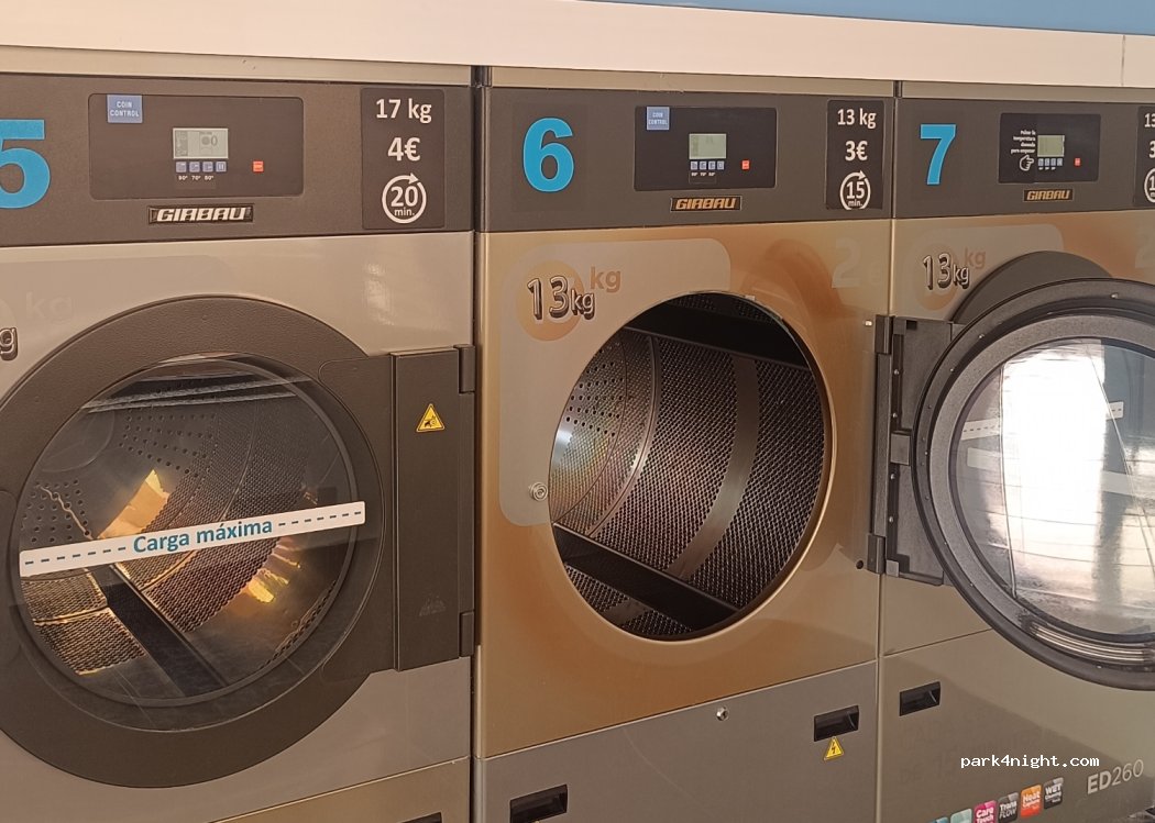 Wäscherei mit mehreren Waschmaschinen und Trocknern. Parkplätze gibt es an den Straßen und ein Mercadona ist nur wenige Schritte entfernt.