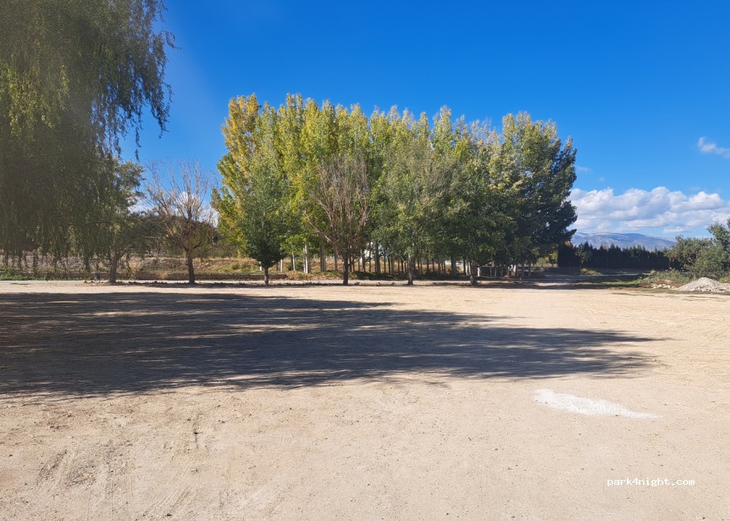 Grand parking pour plus de 10 gros véhicules. Il n'est pas pavé mais compacté, bon accès à la ville et aux itinéraires pédestres et cyclables.