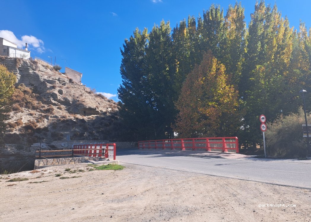 Zona amplia para aparcar entran más de 10 vehículos grandes no está asfaltado pero si esta compactado buen acceso al pueblo y a las rutas tanto de senderismo como para bicicleta