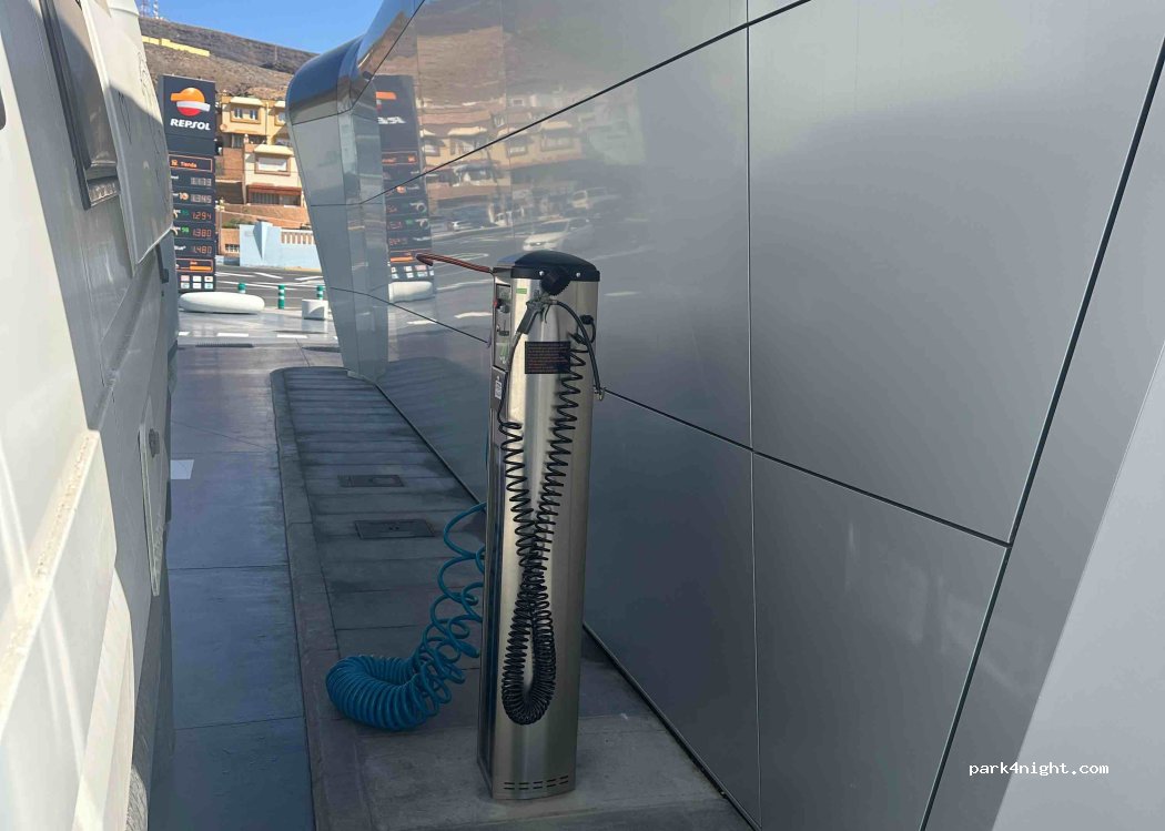 Todo perfecto. 1€ para 100litros más o menos de agua limpia. La rejilla de agua grises, en mi caso, quedaba la furgo algo inclinada. Lugar limpio. Ojalá todos los servicios fueran así!!!