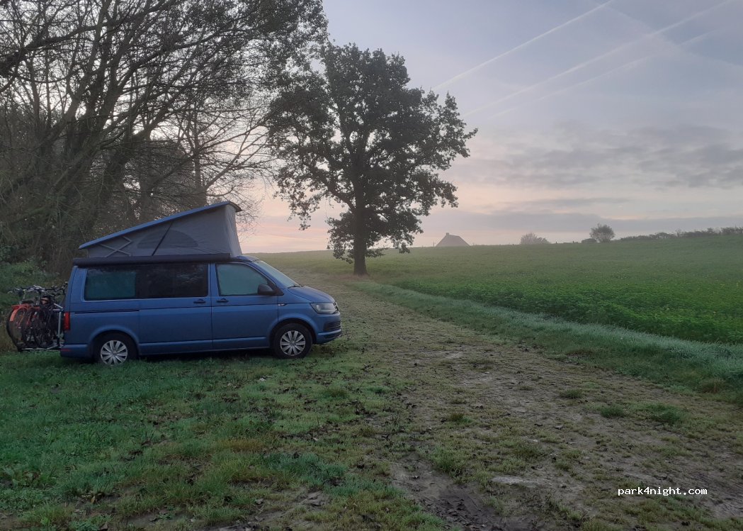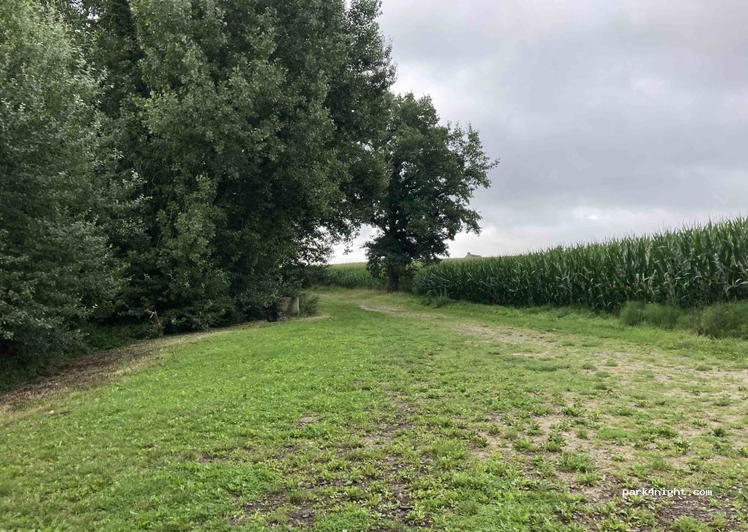 Rustig, natuurlijk veld naast een afgesloten visvijver. Halfverhard toegangswegje, maar vanaf de weg slechts 100m rijden. Mooi vlak. Ideaal voor camperbusjes.
