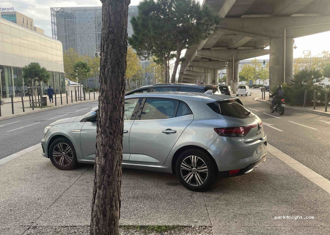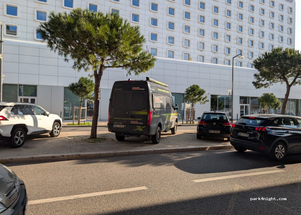 Parking gratuit sur le milieu de la chaussée. Idéal pour attendre le bateau pour la Corse mais il y a de la circulation.