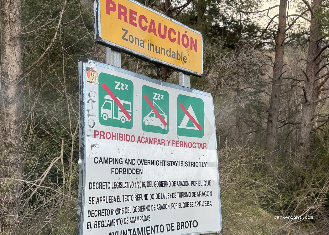 Lieu calme et accessible (véhicules de moins de 2m) à proximité de la rivière. Quelques baladeurs le long du cours d’eau mais rien de dérangeant ! Proche du centre de Broto.