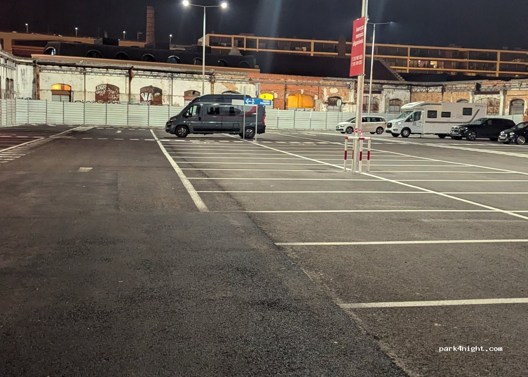 Very good location. We stayed overnight. You will not experience peace and quiet here. Until late at night you can hear the traffic, the worst trams and planes flying overhead. There is a disco nearby. There were a few cars and two campers, we felt safe. I do not recommend it for the night unless you are a heavy sleeper and have construction headphones on your ears that limit outside sounds.