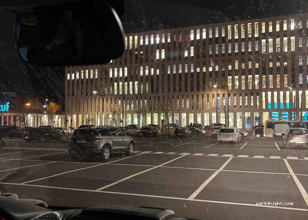 Nouveau parking. Payant. Caméras autour de la machine de paiement. Nous nous sommes sentis en sécurité et avons passé une nuit. Presque personne ici. Bien sûr, c'est bruyant parce que c'est en ville et que les avions passent à basse altitude.