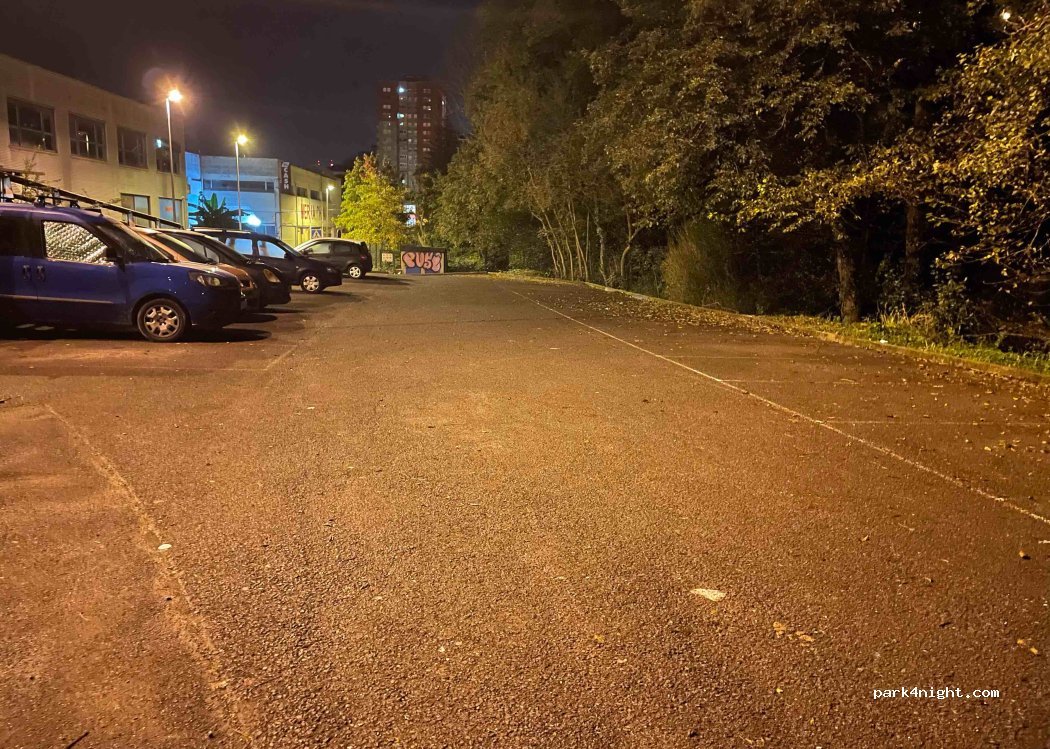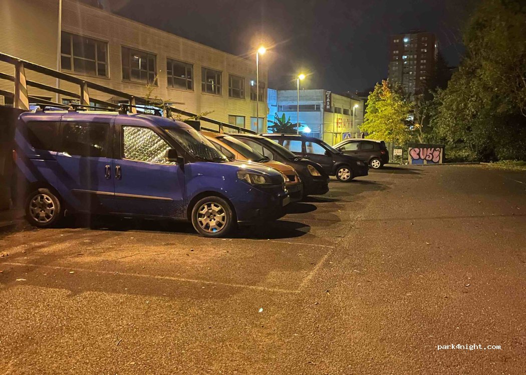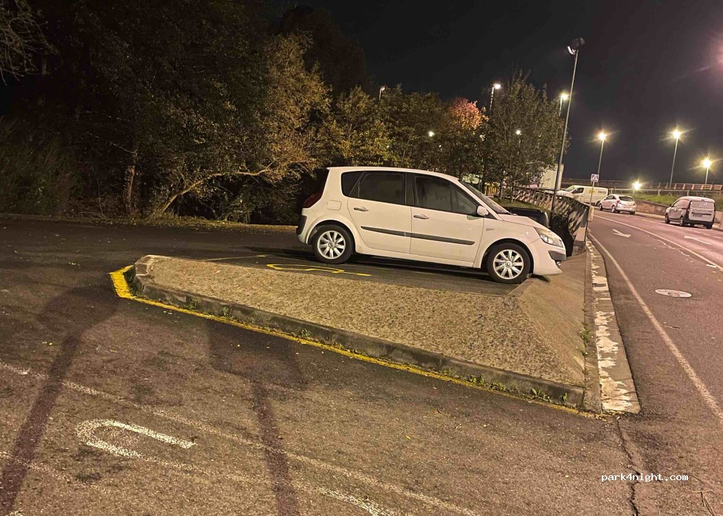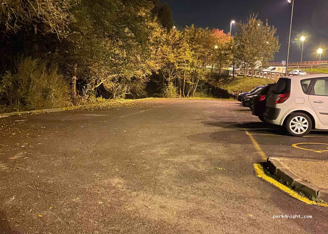Very quiet and flat parking lot, there is a stream next to it, it is next to the road but at night there is little traffic. It is almost on the outskirts of the city and easy to find.
