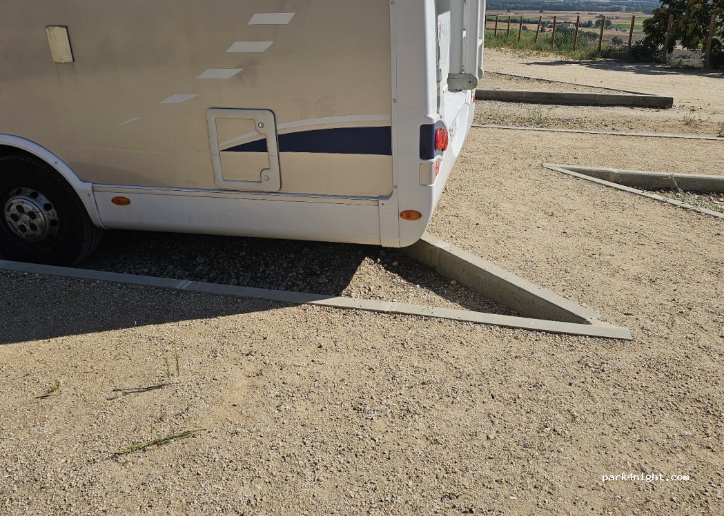 muy mal diseñado, no se entra en sitios y queda autocaravana fuera, no se puede meter en hueco del todo al estar hechos en cuña una rueda pega y falta metro y medio de distancia para la otra rueda. Hay que ir al centro en autocaravana a oficina de turismo a pagar? luego volver? sin sentido aparcamiento y su funcionamiento. después de aparcar, rozar con bordillo AC,te quedabas fuera, nos fuimos