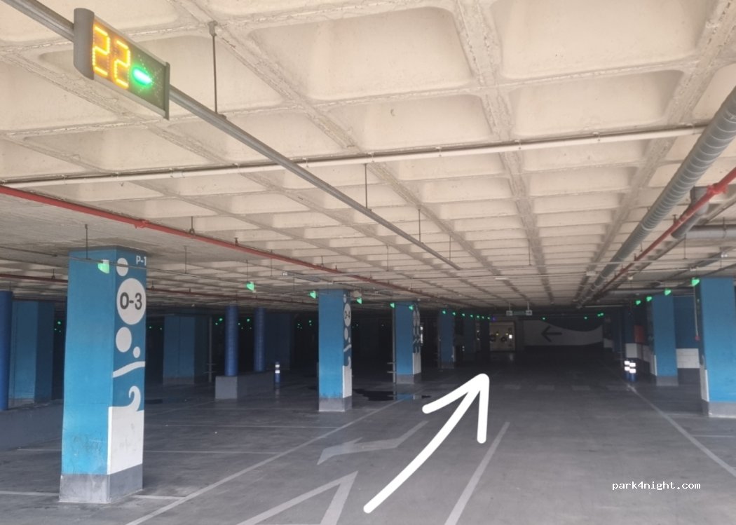 Situé dans le parking d'un centre commercial, au deuxième étage du parking multi-magasins (un niveau en dessous du sommet), à l'arrière du parking près de l'emplacement P-1 O-7 (voir photo prise depuis l'entrée du véhicule). Nous y sommes allés le dimanche et le parking était pratiquement vide.