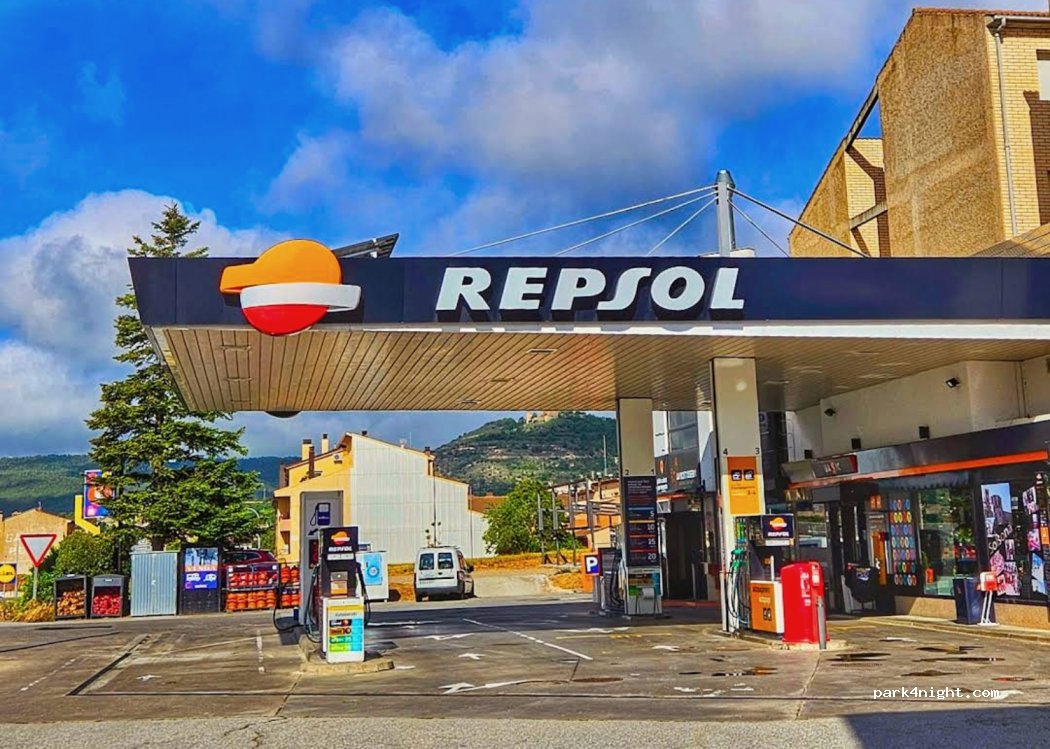 Station-service située le long de la route C-26 à Solsona. On y trouve un petit supermarché, une aire de pique-nique, des pompes à essence et un point d'achat de bouteilles de gaz.