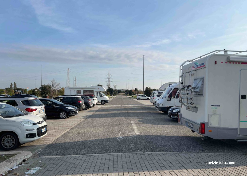 Parking de la nouvelle foire de Rome entrée Nord, sans service, stationnement autorisé également la nuit, sans limitation de hauteur. Payant.