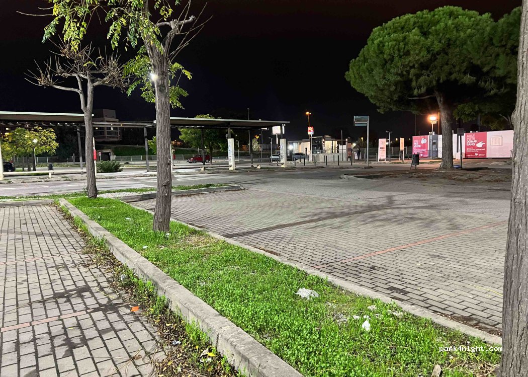 Stayed here to visit the city. It is at the end of L1 metro with direct route into the city. To the La Rambla it’s about twenty minutes on the train. It is a very large car park and the night we stayed we was the only vehicle there. We parked directly under the security camera for added peace of mind. Parking cost us €28 for a day and a half