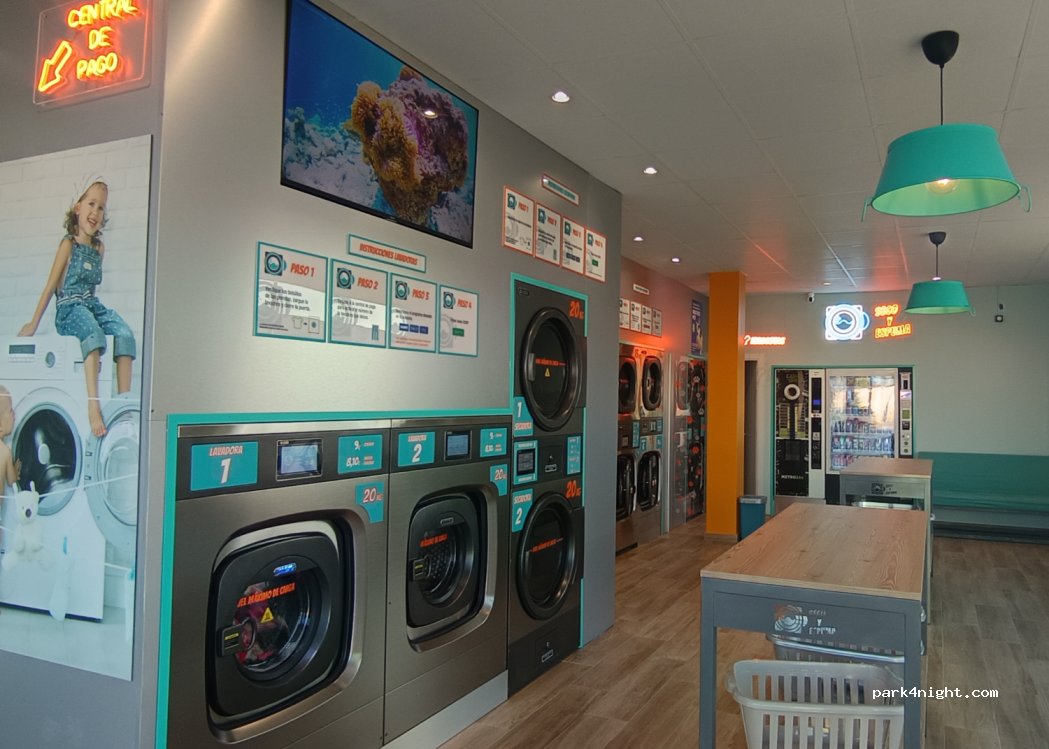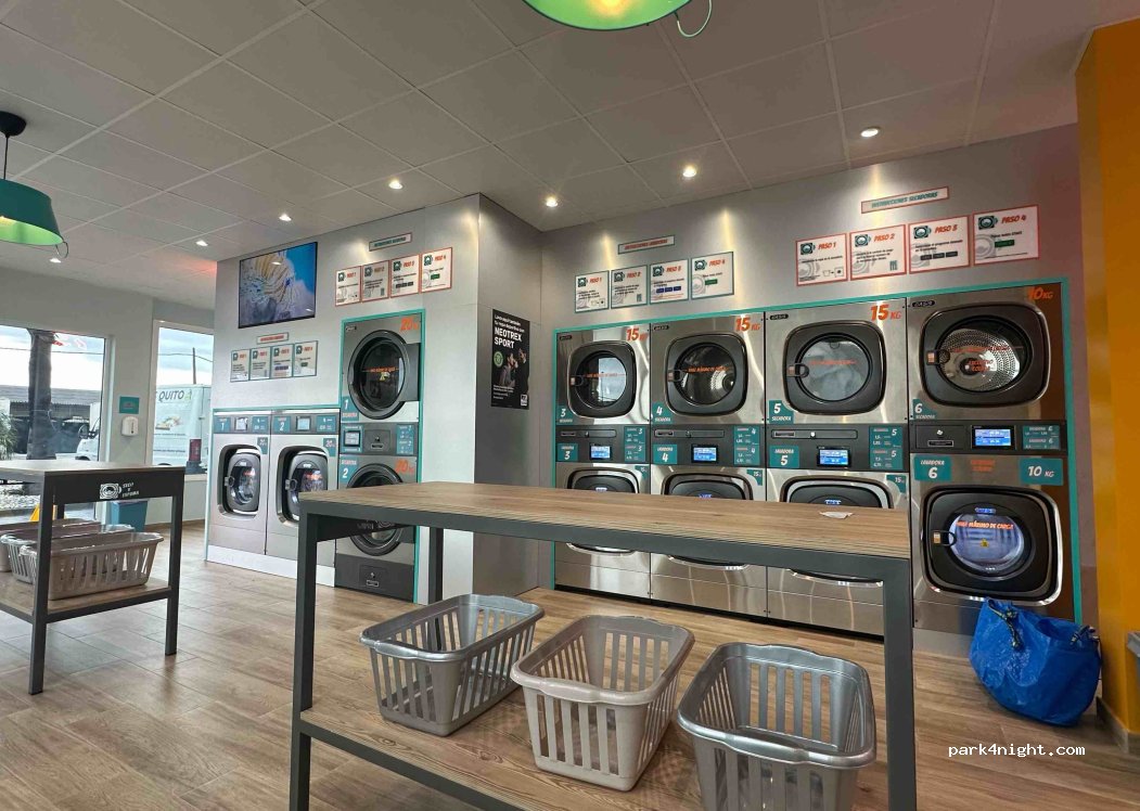 7 washing machines and 7 dryers. Fast and clean. 10kg=5,5