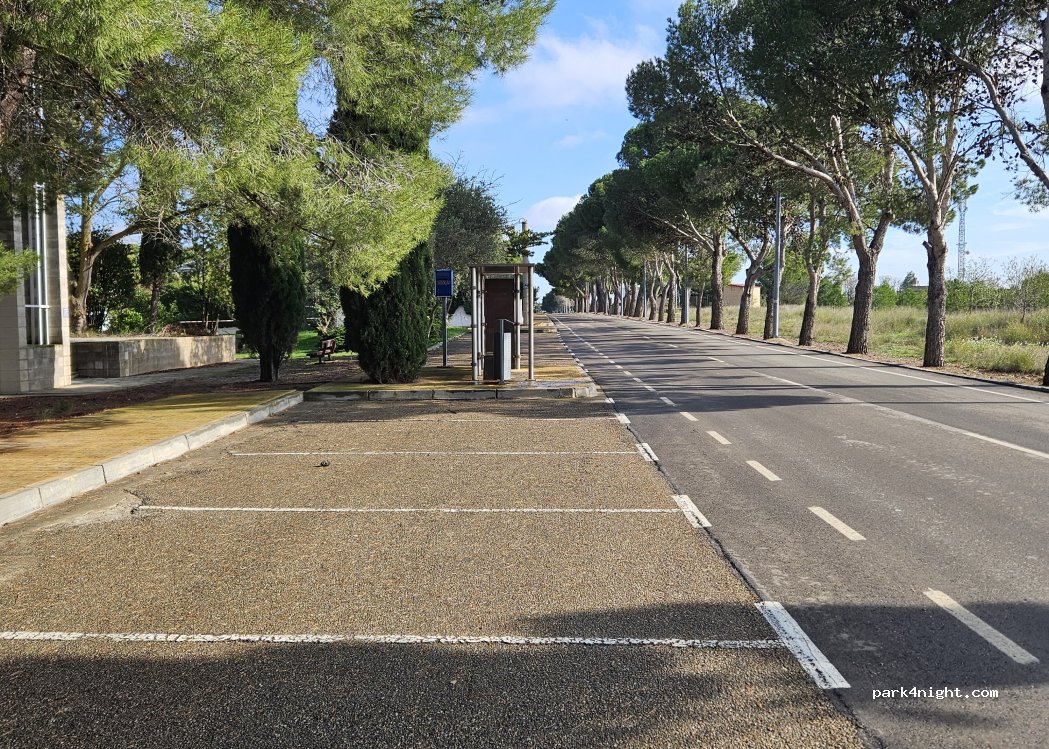 Large parking lot for a chapel. No services. Right next to the road, although few vehicles circulate. Close to the access to the route of the Dehesa del Bohalar (perfect for a walk with dogs)