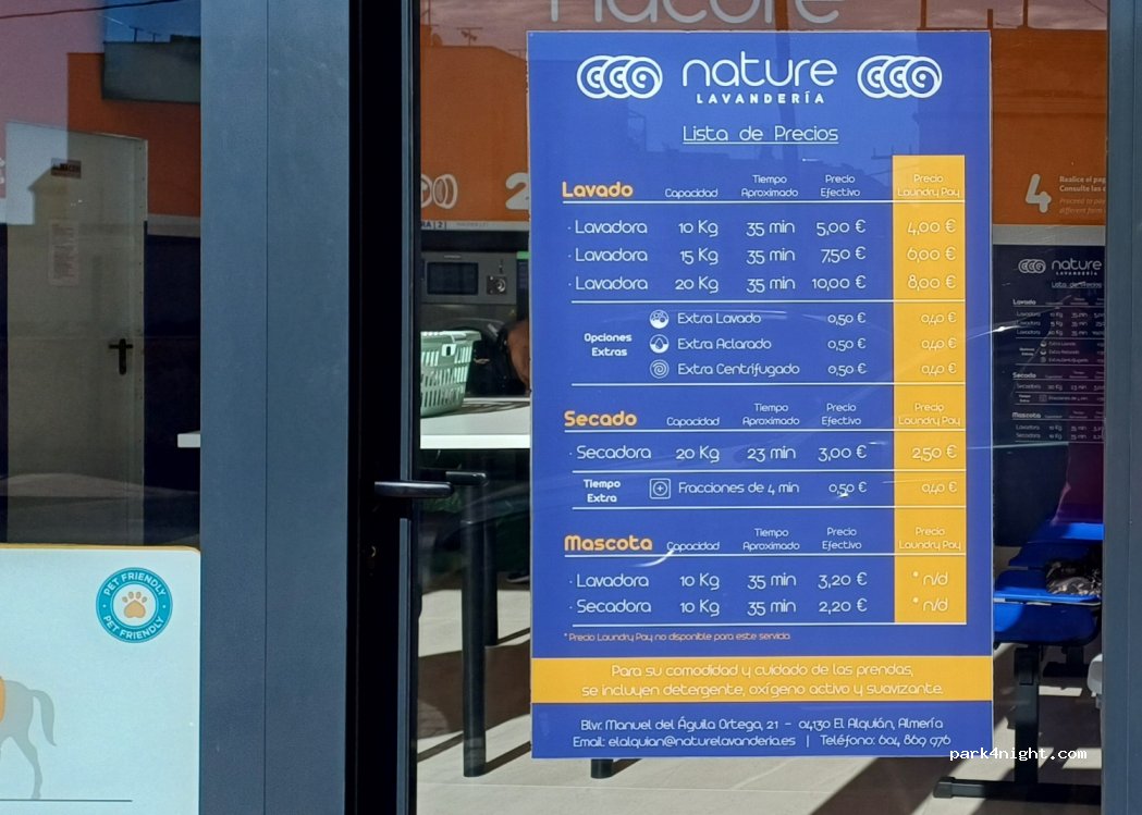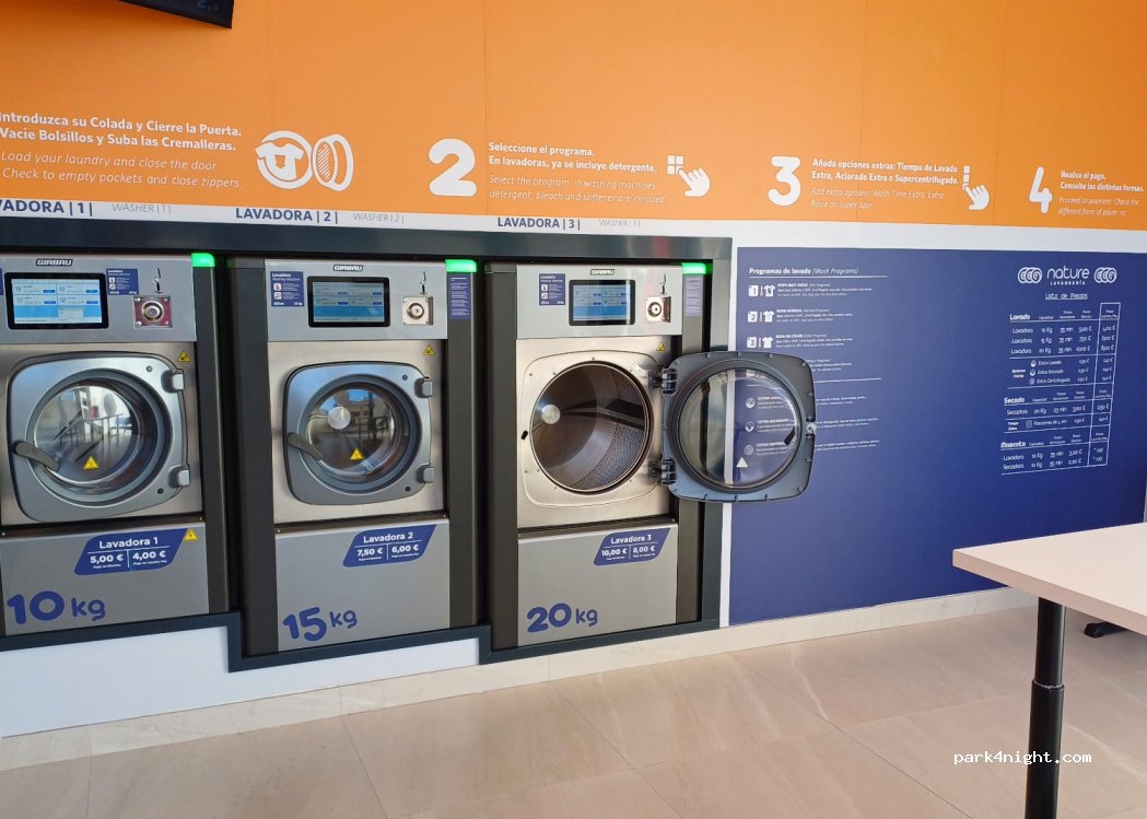 Wäsche kann auch mit 50 Grad gewaschen werden...kein starker Waschmittelgeruch, wie in anderen Waschsalons...eher dezenter Geruch nach Lemongras...ideal, wenn man Bettwäsche waschen möchte, ohne danach die ganze Nacht Parfümgeruch in der Nase zu haben...Schotter-Parkplatz ist direkt gegenüber