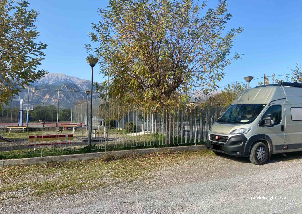 In einem Häuserkomplex am Rande einer Zitrusplantage. Ein kleiner Park mit Kinderspielplatz und Basketballfeld. Ruhige Umgebung vor den Toren von Sparta. Gut um eine Pause einzuhalten und eine sichere Nacht zu verbringen. Man kann nicht bis zum Brunnen fahren, somit nur mit Spritzkanne oder Kanister.