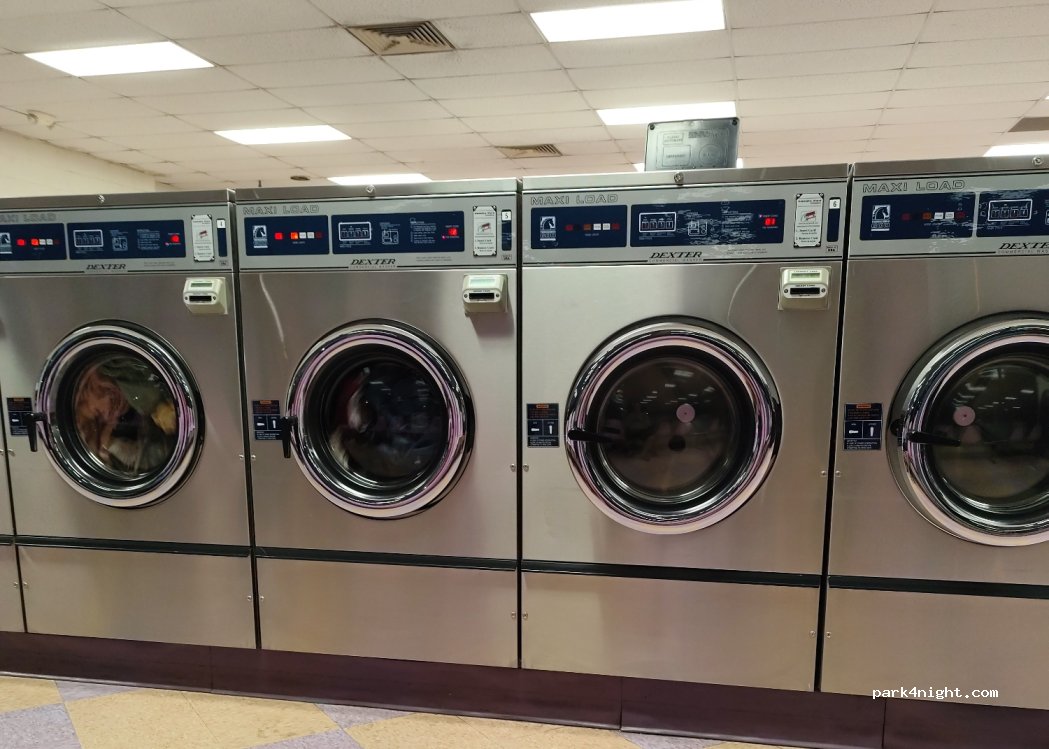 Clean laundry with many machines.