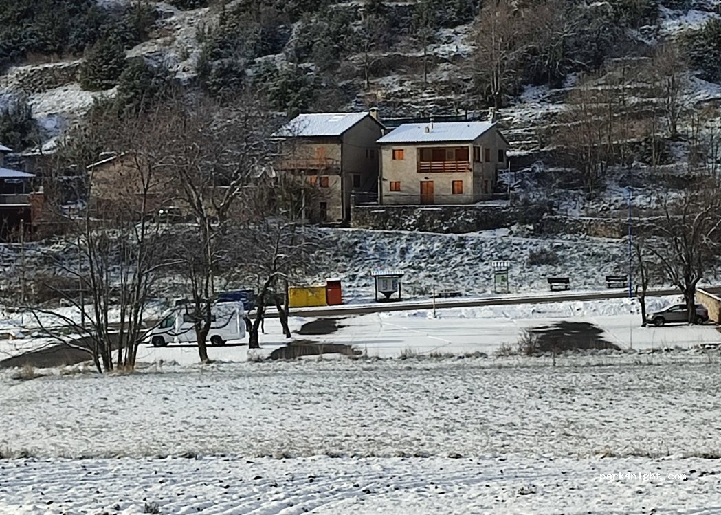 Parking on the outskirts of the village, without services, but a good area to spend the night, flat and spacious. The night we spent there were several campers and other caravans with us. Very quiet.