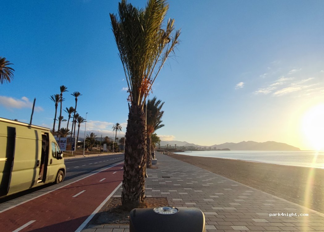 It's winter and there's no one around. There are plenty of parking spaces. I understand that in the middle of summer it would be impossible. A very quiet place to spend a night and continue. In front of the beach.