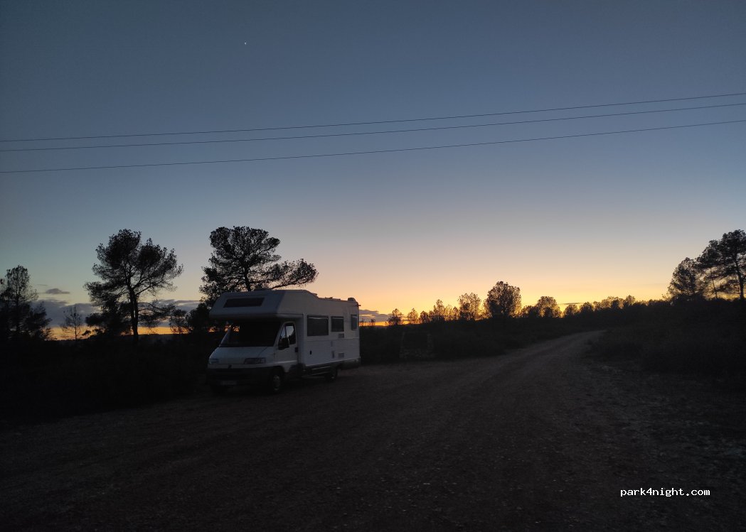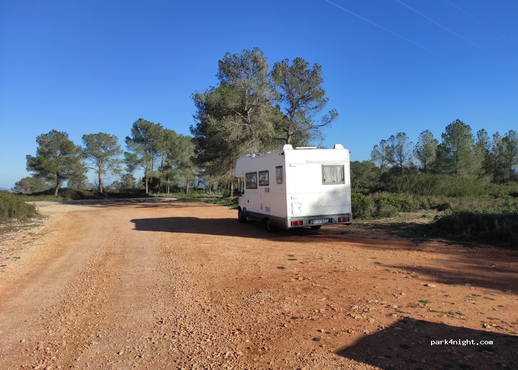 Pequeña explanada de tierra cerca de la carretera CV-590, en la que pasan unos pocos coches de día y de noche ninguno. Caben dos o tres Ac's. Punto de partida para ir al Barranco de la Hoz, con su mirador. También cerca está el singular Cuco Magna. Se duerme genial, con total tranquilidad y silencio. Además, el cielo en días despejados está lleno de estrellas. Cuidemos estos pequeños y bellos lugares!