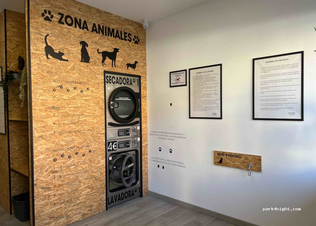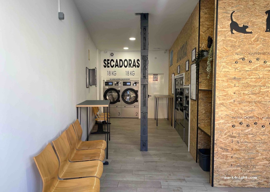New laundry on San Rafael Avenue. It has 3 washing machines and 2 dryers, apart from 1 washing machine and dryer for pets. You pay in cash, in the establishment itself there is a machine to change €5, €10 and €20 bills. The machines only accept €1 coins. You can also pay by card through the app. If you have a small car or camper you can park on the avenue itself, otherwise, one street up there is plenty of parking space and it is quiet. It is pet-friendly. If you have any problems, there is a telephone number to contact where the guy will help you immediately and solve it without any problem.